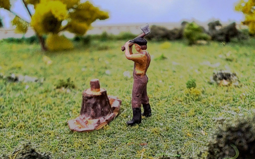 Holzhacker mit Beil, Holz und Baumstumpf 6,90 € * # NTR06
